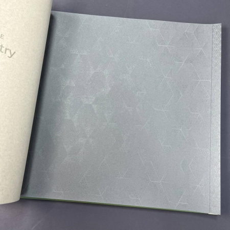 В данной коллекции обоев представлены три акцентных дизайна, созданных на основе идеальной гармонии и ритма. В первом дизайне присутствует смелый и энергичный геометрический рисунок с 3D-эффектом. Во втором дизайне крупные графические фигуры динамично переплетены между собой, а также присутствует орнамент «trellis» небольшого размера, который визуально выглядит очень легким и полупрозрачным. Цветовая гамма каталога вдохновлена разнообразием оттенков натуральных камней. В центре палитры находится нежный, хрустальный серебристо-голубой цвет, окруженный пастельным нефритово-зеленым, мягким графитово-серым и теплыми песочными оттенками. Геометрические паттерны в этой коллекции дополняются двумя фоновыми моделями, которые повторяют фактуру текстиля. В сочетании с естественными оттенками они гармонизируют и смягчают строгость и уравновешенность фигур, придавая пространству домашний уют.